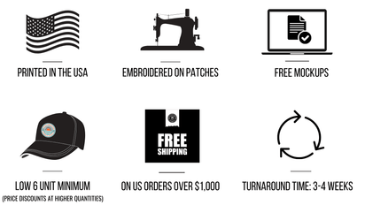 Our turn around times on these patch hats are 2 to 3 weeks from artwork approval wheras the competitor is typically 5 to 6 weeks minimum.